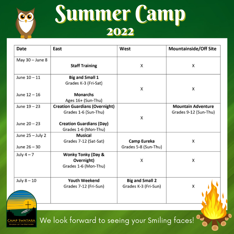 Overnight & Day Camp is back for 2022! Come join us this summer for some much needed Camp Swatara time.