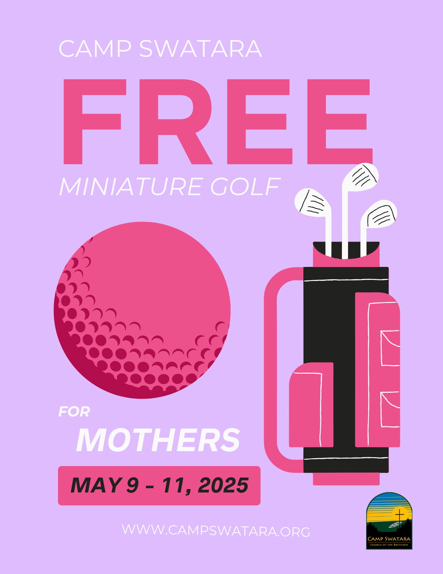 Come camp for the weekend or just spend the day! All Moms visiting or camping with us on Mother’s Day weekend receive a free round of Mini-Golf. You will receive your ticket when you check in at the Camp Store.